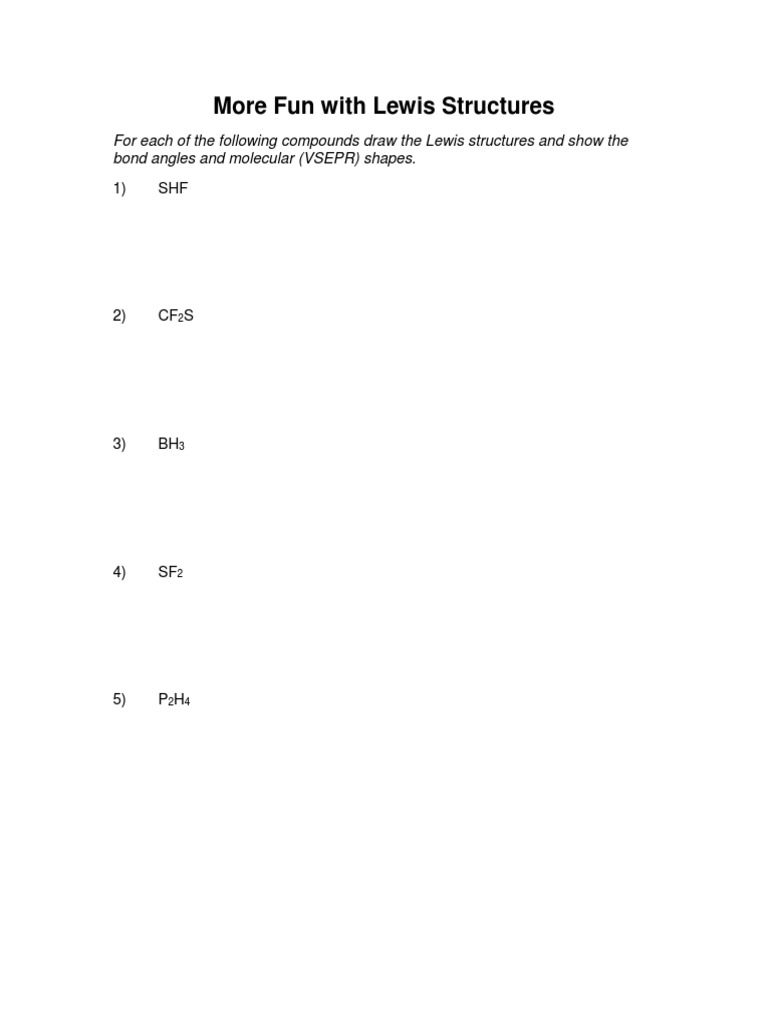 Vsepr worksheet with answers pdf the lewis and vsepr spreadsheets correspond to 1 january 2007. Read pdf vsepr worksheet with answers vsepr worksheet with answers when somebody should go to the ebook stores, search foundation by shop, shelf by shelf, it is really problematic. Vsepr worksheets answers self test chapter 10 author s version of a practice test self test chapter 10 answers writing lewis structures for covalent compounds.